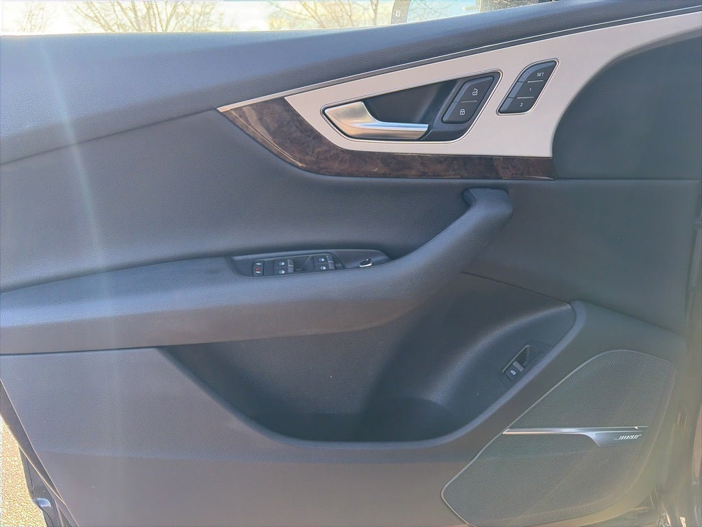 2018 AUDI Q7 2.0T Premium Plus Quattro, 4D Sport Utility, 2.0L I4 TFSI DOHC, 8-Speed Automatic with Tiptronic, quattro, Orca Black Metallic, Black Leather, 10 Speakers, 3.504 Axle Ratio, 3rd row seats: bench, 4-Wheel Disc Brakes, ABS brakes, Air Conditioning, Alloy wheels, AM/FM radio: SiriusXM, Auto-dimming Rear-View mirror, Automatic temperature control, Brake assist, Bumpers: body-color, CD player, Compass, Delay-off headlights, Driver door bin, Driver vanity mirror, Driver's Seat Mounted Armrest, Dual front impact airbags, Dual front side impact airbags, Electronic Stability Control, Exterior Parking Camera Rear, Four wheel independent suspension, Front anti-roll bar, Front Bucket Seats, Front dual zone A/C, Front fog lights, Front reading lights, Fully automatic headlights, Garage door transmitter: HomeLink, Genuine wood dashboard insert, Genuine wood door panel insert, Heated door mirrors, Heated Front Bucket Seats, Heated front seats, High intensity discharge headlights: Xenon plus, Illuminated entry, Leather Seating Surfaces, Leather Shift Knob, Leather steering wheel, Low tire pressure warning, Memory seat, Occupant sensing airbag, Outside temperature display, Overhead airbag, Panic alarm, Passenger door bin, Passenger seat mounted armrest, Passenger vanity mirror, Power door mirrors, Power driver seat, Power Liftgate, Power moonroof, Power passenger seat, Power steering, Power windows, Radio data system, Radio: MMI Radio Plus w/Audi Sound System, Rain sensing wipers, Rear air conditioning, Rear anti-roll bar, Rear fog lights, Rear reading lights, Rear seat center armrest, Rear window defroster, Rear window wiper, Remote keyless entry, Roof rack: rails only, Security system, Speed control, Speed-sensing steering, Split folding rear seat, Spoiler, Steering wheel mounted audio controls, Tachometer, Telescoping steering wheel, Tilt steering wheel, Traction control, Trip computer, Turn signal indicator mirrors, Variably intermittent wipers, Wheels: 18 5-Arm-Design.