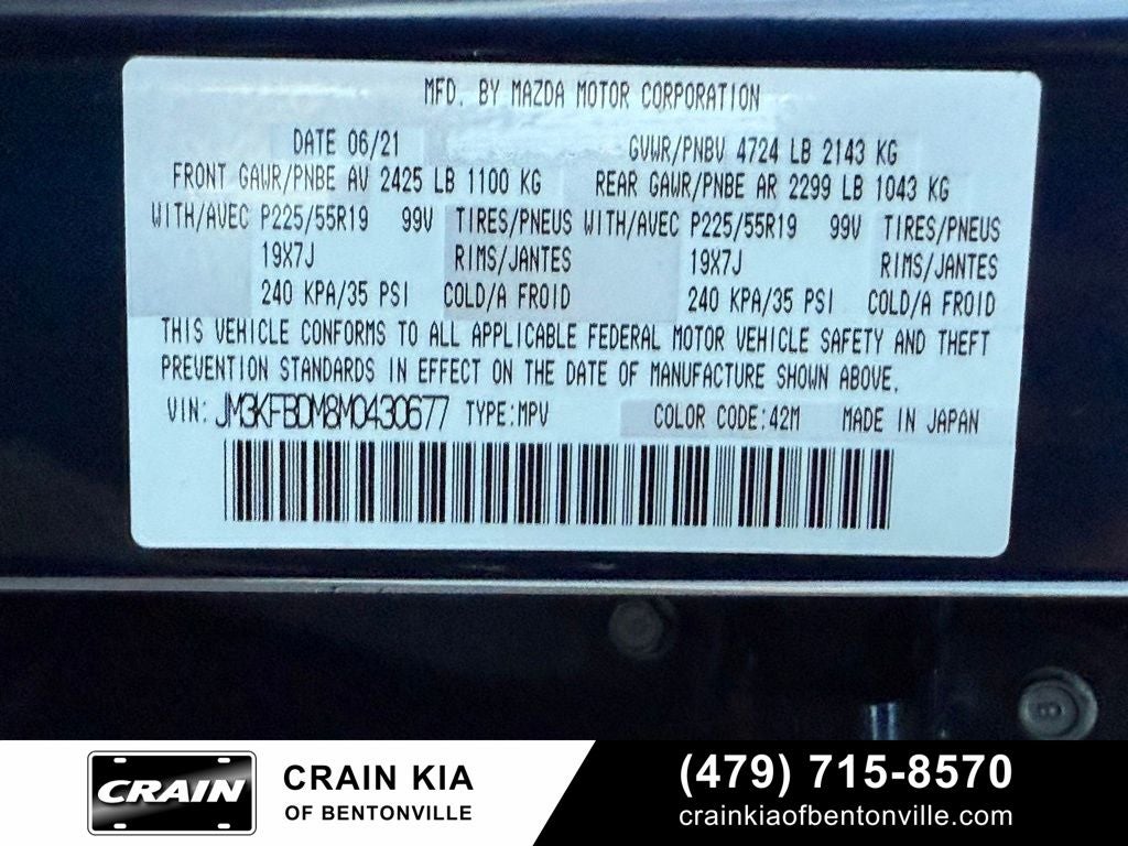 Clean Carfax, One Owner, 10 Speakers, 4-Wheel Disc Brakes, 4.624 Axle Ratio, ABS brakes, Active Driving Display (Windshield Type), Air Conditioning, Alloy wheels, AM/FM radio: SiriusXM, AppLink/Apple CarPlay and Android Auto, Auto High-beam Headlights, Auto-dimming Rear-View mirror, Automatic Power Folding Side Mirrors, Automatic temperature control, Bose 10-Speaker Premium Audio Sound System, Brake assist, Bumpers: body-color, Cargo Mat, Delay-off headlights, Driver door bin, Driver vanity mirror, Dual front impact airbags, Dual front side impact airbags, Electronic Stability Control, Emergency communication system: MAZDA CONNECT, Exterior Parking Camera Rear, Four wheel independent suspension, Front anti-roll bar, Front Bucket Seats, Front Center Armrest, Front dual zone A/C, Front fog lights, Front reading lights, Fully automatic headlights, Garage door transmitter: HomeLink, GT Premium Package, Heated door mirrors, Heated Front Bucket Seats, Heated front seats, Heated Rear Seats, Heated Steering Wheel, Illuminated entry, Leather Seat Trim, Leather Shift Knob, Low tire pressure warning, Memory seat, Occupant sensing airbag, Outside temperature display, Overhead airbag, Overhead console, Panic alarm, Passenger door bin, Passenger vanity mirror, Power door mirrors, Power driver seat, Power Liftgate, Power moonroof, Power passenger seat, Power steering, Power windows, Radio data system, Radio: AM/FM/HD Audio System, Rain sensing wipers, Rear anti-roll bar, Rear Bumper Guard, Rear reading lights, Rear seat center armrest, Rear window defroster, Rear window wiper, Remote keyless entry, Speed control, Speed-sensing steering, Split folding rear seat, Spoiler, Steering wheel mounted audio controls, Tachometer, Telescoping steering wheel, Tilt steering wheel, Traction control, Trip computer, Turn signal indicator mirrors, Variably intermittent wipers, Ventilated Front Seats, Wheels: 19 x 7J Aluminum Alloy, Windshield Wiper De-Icer.