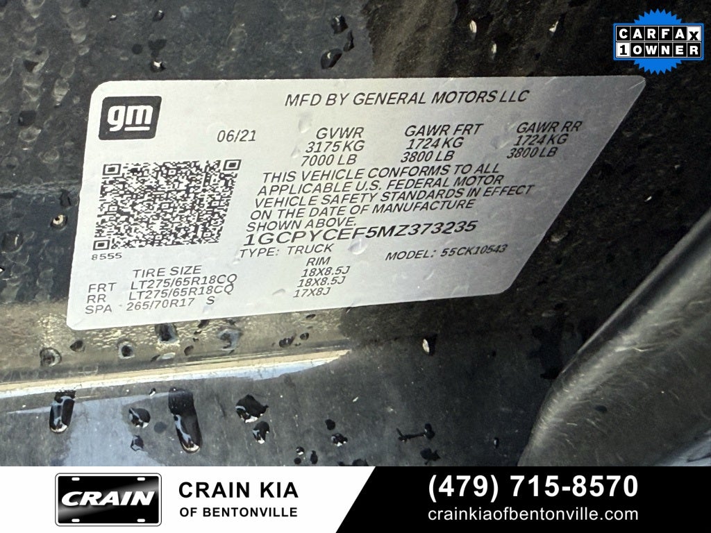 Clean Carfax, One Owner, 6-Speed Automatic Electronic with Overdrive, 4WD, Black Cloth, 170 Amp Alternator, 3.42 Rear Axle Ratio, 3.5 Diagonal Monochromatic Display, 4-Wheel Disc Brakes, 40/20/40 Front Split Bench Seat, 4G LTE Wi-Fi Hot Spot Capable, 6 Speakers, ABS brakes, Air Conditioning, Alloy wheels, AM/FM radio: SiriusXM, Apple CarPlay/Android Auto, Auto-Locking Rear Differential, Auxiliary External Transmission Oil Cooler, Bluetooth® For Phone, Brake assist, Chevrolet Connected Access Capable, Cloth Seat Trim, Color-Keyed Carpeting Floor Covering, Compass, Custom Convenience Package, Deep-Tinted Glass, Delay-off headlights, Driver door bin, Driver vanity mirror, Dual Exhaust w/Polished Outlets, Dual front impact airbags, Dual front side impact airbags, Electric Rear-Window Defogger, Electronic Cruise Control, Electronic Stability Control, EZ Lift Power Lock & Release Tailgate, Front anti-roll bar, Front Center Armrest w/Storage, Front reading lights, Front Rubberized Vinyl Floor Mats, Front wheel independent suspension, Fully automatic headlights, Heated door mirrors, Heavy-Duty Air Filter, High Gloss Black Grille, Hill Descent Control, Hitch Guidance, Illuminated entry, Infotainment Package, LED Cargo Area Lighting, Low tire pressure warning, Manual Tilt Wheel Steering Column, Not Equipped w/Active Fuel Management, Occupant sensing airbag, Off-Road Suspension w/2 Lift, OnStar & Chevrolet Connected Services Capable, Outside temperature display, Overhead airbag, Overhead console, Panic alarm, Passenger door bin, Passenger vanity mirror, Performance Red Recovery Hooks, Polished Exhaust Tip, Power Door Locks, Power door mirrors, Power Front Windows w/Driver Express Up/Down, Power Front Windows w/Passenger Express Down, Power Rear Windows w/Express Down, Power steering, Power windows, Preferred Equipment Group 2CX, Premium audio system: Chevrolet Infotainment 3, Radio data system, Radio: Chevrolet Infotainment 3 System, Rear 60/40 Folding Bench Seat (Folds Up), Rear reading lights, Rear Rubberized-Vinyl Floor Mats, Rear step bumper, Rear window defroster, Remote Keyless Entry, Remote keyless entry, Remote Vehicle Starter System, Security system, SiriusXM Radio, Speed control, Speed-sensing steering, Split folding rear seat, Standard Tailgate, Suspension Package, Tachometer, Theft Deterrent System (Unauthorized Entry), Tilt steering wheel, Traction control, Trailering Package, Trip computer, Variably intermittent wipers, Voltmeter, Wheels: 18 x 8.5 Black Painted Aluminum.