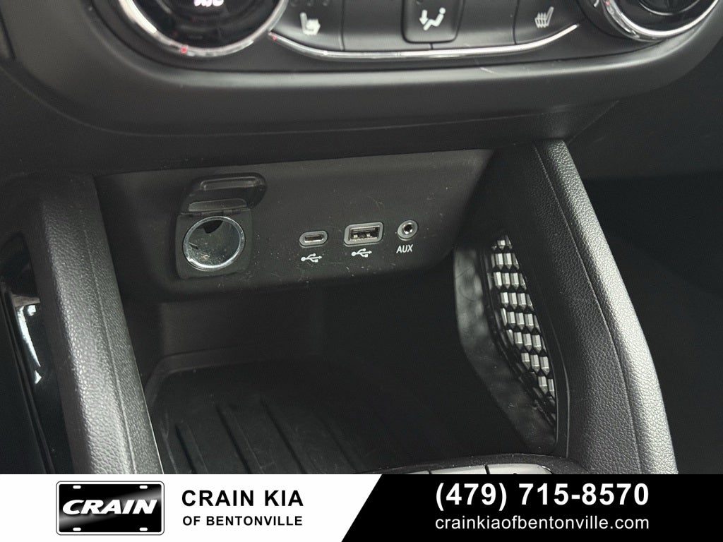 1 Type-A & 1 Type-C USB Charging-Only Ports, 120-Volt Power Outlet, 2-Way Power Driver Lumbar Seat Adjuster, 4-Way Manual Front Passenger Seat Adjuster, 4-Wheel Disc Brakes, 5.45 Axle Ratio, 6 Speakers, 6-Speaker Audio System Feature, 8-Way Power Driver Seat Adjuster, 8 Diagonal Color Touchscreen Display, ABS brakes, Air Conditioning, Alloy wheels, AM/FM radio, Apple CarPlay/Android Auto, Auto High-beam Headlights, Brake assist, Bumpers: body-color, Cabin Humidity Sensor, Cloth Seat Trim, Compass, Convenience Package, Delay-off headlights, Driver & Front Passenger Illuminated Vanity Mirrors, Driver Confidence Package, Driver door bin, Driver vanity mirror, Dual front impact airbags, Dual front side impact airbags, Electronic Stability Control, Emergency communication system: OnStar and Chevrolet connected services capable, Exterior Parking Camera Rear, Flat-Folding Front Passenger Seatback, Front anti-roll bar, Front Bucket Seats, Front Center Armrest, Front fog lights, Front reading lights, Front wheel independent suspension, Fully automatic headlights, Heated door mirrors, Heated Driver & Front Passenger Seats, Heated front seats, Illuminated entry, Inside Rear-View Auto-Dimming Mirror, Knee airbag, Lane Change Alert w/Side Blind Zone Alert, Low tire pressure warning, Occupant sensing airbag, Overhead airbag, Overhead console, Panic alarm, Passenger door bin, Passenger vanity mirror, Performance Package, Power door mirrors, Power driver seat, Power steering, Power windows, Preferred Equipment Group 1LT, Radio data system, Radio: Chevrolet Infotainment 3 System, Rear Cross Traffic Alert, Rear Park Assist, Rear side impact airbag, Rear window defroster, Rear window wiper, Remote keyless entry, Ride & Handling Suspension, Roof rack: rails only, Security system, Single-Zone Auto Climate Control Air Conditioning, SiriusXM Radio, Speed control, Split folding rear seat, Spoiler, Steering wheel mounted audio controls, Tachometer, Telescoping steering wheel, Tilt steering wheel, Traction control, Trip computer, Variably intermittent wipers, Wheels: 17 High Gloss Black Machined Aluminum, Wireless Apple CarPlay/Android Auto.