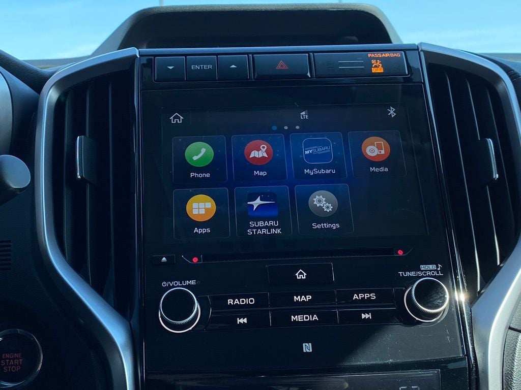 - Radio: Subaru STARLINK 8.0" Multimedia Plus System -inc: AM/FM stereo HD Radio w/single disc CD player, MP3/WMA/CRR/RW file capability, multi-touch gesture high resolution display screen, voice activated controls, Bluetooth® audio streaming and hands-free phone connectivity (applicable w/compatible cell phone), Bluetooth® hands-free SMS text messaging connectivity (applicable w/compatible cell phone), Near Field Communication (NFC), iPod control capability, SiriusXM All Access radio (4 months free trial/subscription required after), SiriusXM Travel Link (4 months free trial/subscription required after), smartphone integration for Aha, Android Auto, CarPlay, Pandora and STARLINK cloud applications, USB and Over The Air (OTA) audio system update, steering wheel controls for audio and Bluetooth®, 6 speakers, 3.5mm auxiliary input jack and front, second and third row dual USB ports