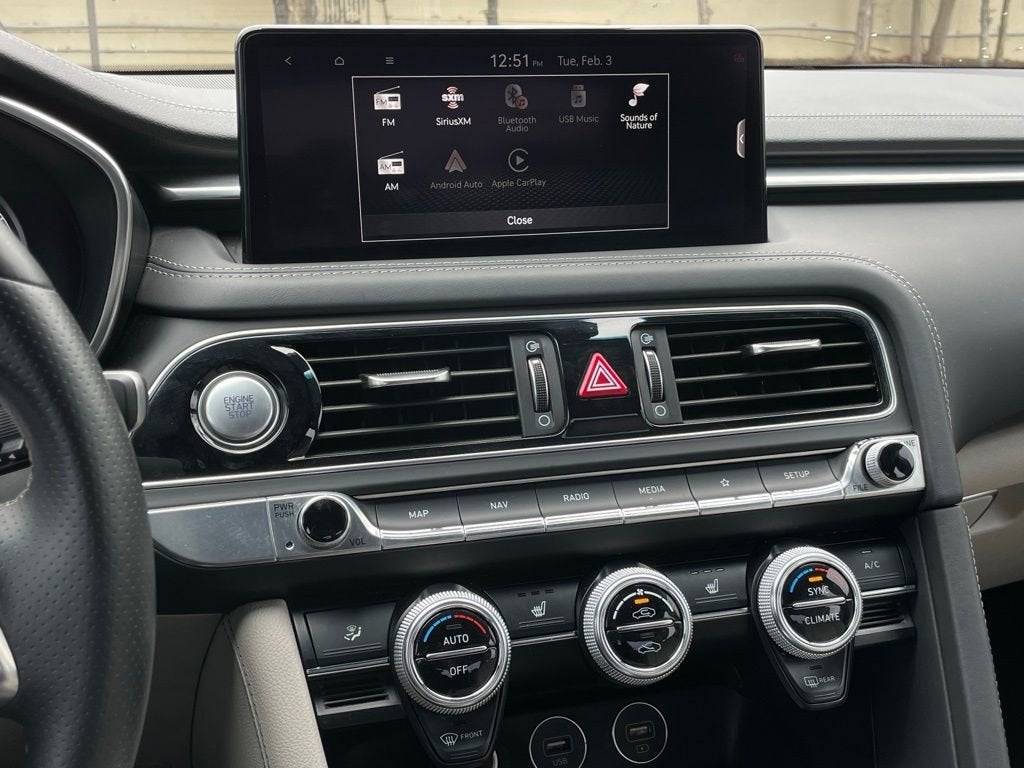 100 Hour Love It or Leave It Exchange Policy, 100 Year or 100,000 Mile Power-Train Warranty, *** Clean CARFAX ***, Navigation / GPS, Leather, Heated Seats, Cruise Control, Steering Wheel Controls, Keyless Entry, Bluetooth®, USB / AUV Ports, MP3 Player, SiriusXM Satellite Radio, Remote Start System, Power Liftgate, Wireless Apple CarPlay, Wireless Google Android Auto, Alloy Wheels, Premium Wheels, Parking Sensors, Blind Spot Warning System, Lane Keep Assist, Forward Collision Alert, Premium Audio, Color Touchscreen Display, Backup / Rear View Camera, G70 2.0T, 4D Sedan, 2.0L Turbocharged, 8-Speed Automatic, RWD, Makalu Gray, Gray w/Leather Seating Surfaces, 4-Wheel Disc Brakes, 6 Speakers, ABS brakes, Air Conditioning, Alloy wheels, AM/FM radio: SiriusXM, Android Auto & Apple CarPlay, Anti-whiplash front head restraints, Auto High-beam Headlights, Auto-dimming Rear-View mirror, Automatic temperature control, Brake assist, Bumpers: body-color, Delay-off headlights, Driver door bin, Driver vanity mirror, Dual front impact airbags, Dual front side impact airbags, Electronic Stability Control, Emergency communication system: Genesis Connected Services, Exterior Parking Camera Rear, Four wheel independent suspension, Front anti-roll bar, Front Bucket Seats, Front Center Armrest, Front dual zone A/C, Front reading lights, Fully automatic headlights, Garage door transmitter: HomeLink, Heated door mirrors, Heated front seats, Heated Multi-Adjustable Front Bucket Seats, Illuminated entry, Knee airbag, Leatherette Seating Surfaces, Low tire pressure warning, Navigation System, Occupant sensing airbag, Option Group 01, Outside temperature display, Overhead airbag, Overhead console, Panic alarm, Passenger door bin, Passenger vanity mirror, Power door mirrors, Power driver seat, Power passenger seat, Power steering, Power windows, Radio: AM/FM/SiriusXM/HD Audio System, Rear anti-roll bar, Rear reading lights, Rear seat center armrest, Rear window defroster, Remote keyless entry, Security system, Speed control, Speed-sensing steering, Speed-Sensitive Wipers, Split folding rear seat, Steering wheel mounted audio controls, Tachometer, Telescoping steering wheel, Tilt steering wheel, Traction control, Trip computer, Turn signal indicator mirrors, Variably intermittent wipers, Wheels: 18 x 8.0J Alloy.