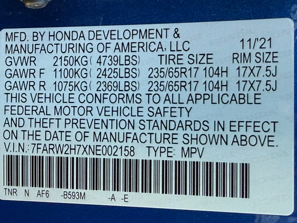 2022 Honda CR-V AWD 1.5L I4 DOHC 16V CVT AWD, 4-Wheel Disc Brakes, 5.64 Axle Ratio, 6 Speakers, ABS brakes, Adaptive Cruise Control: Adaptive Cruise Control (ACC) with Low-Speed Follow, Air Conditioning, Alloy wheels, AM/FM radio, Apple CarPlay/Android Auto, Auto High-beam Headlights, Automatic temperature control, Brake assist, Bumpers: body-color, Cloth Seat Trim, Compass, Delay-off headlights, Driver door bin, Driver vanity mirror, Dual front impact airbags, Dual front side impact airbags, Electronic Stability Control, Exterior Parking Camera Rear, Forward collision: Collision Mitigation Braking System (CMBS) + FCW mitigation, Four wheel independent suspension, Front anti-roll bar, Front Bucket Seats, Front Center Armrest, Front dual zone A/C, Front reading lights, Heated Front Bucket Seats, Heated front seats, Illuminated entry, Low tire pressure warning, Occupant sensing airbag, Outside temperature display, Overhead airbag, Overhead console, Panic alarm, Passenger door bin, Passenger vanity mirror, Power door mirrors, Power steering, Power windows, Radio data system, Radio: 180-Watt AM/FM Audio System, Rear anti-roll bar, Rear seat center armrest, Rear window defroster, Rear window wiper, Remote keyless entry, Speed control, Speed-sensing steering, Speed-Sensitive Wipers, Split folding rear seat, Spoiler, Steering wheel mounted audio controls, Tachometer, Telescoping steering wheel, Tilt steering wheel, Traction control, Trip computer, Variably intermittent wipers, Wheels: 17 Machine-Finished Alloy w/Gloss Black. Clean CARFAX.