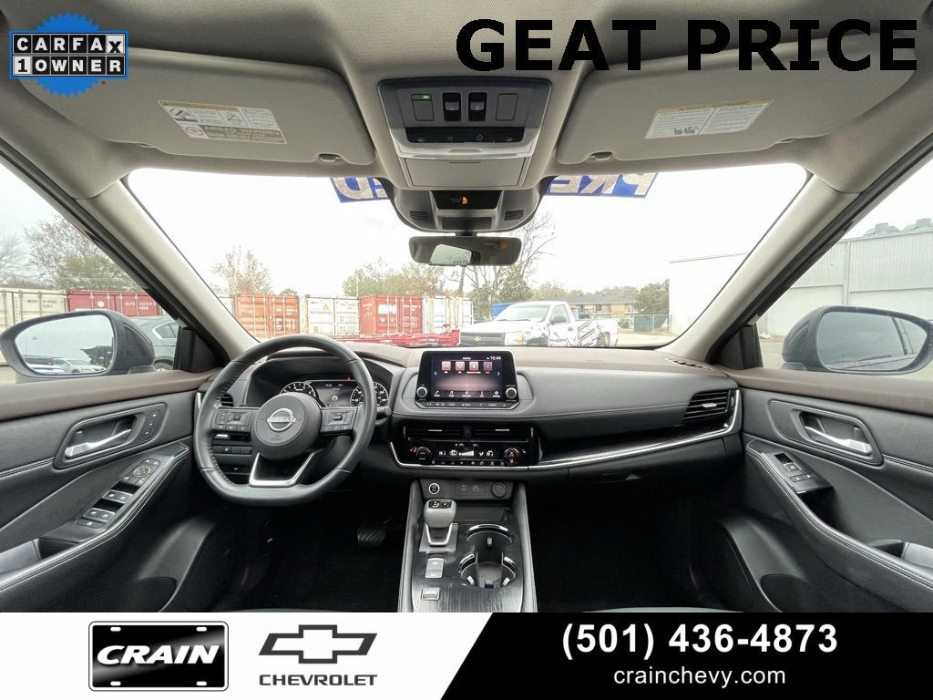 100 Hour Love It or Leave It Exchange Policy, 100 Year or 100,000 Mile Power-Train Warranty, *** 1 Owner CARFAX ***, *** Clean CARFAX ***, Sunroof / Moonroof / Panoramic Roof, Leather, Cruise Control, Steering Wheel Controls, Keyless Entry, Bluetooth®, USB / AUV Ports, MP3 Player, SiriusXM Satellite Radio, Fog Lights, Wireless Apple CarPlay, Wireless Google Android Auto, Alloy Wheels, Premium Wheels, Parking Sensors, Adaptive Cruise Control, Blind Spot Warning System, Rear Cross Traffic Alert and Braking, Lane Keep Assist, Forward Collision Alert, Premium Audio, Wi-Fi Hotspot Capability, Color Touchscreen Display, Backup / Rear View Camera, Rogue SL, 4D Sport Utility, 1.5L I3 Turbocharged DOHC 12V LEV3-ULEV50 201hp, CVT with Xtronic, FWD, Super Black, Charcoal w/Leather-Appointed Seat Trim, 19 Aluminum Alloy Wheels, 4-Wheel Disc Brakes, 5.604 Axle Ratio, 6 Speakers, ABS brakes, Air Conditioning, Alloy wheels, AM/FM Radio, AM/FM radio: SiriusXM, Auto High-beam Headlights, Auto-dimming Rear-View mirror, Automatic temperature control, Black Splash Guards (Set of 4), Brake assist, Bumpers: body-color, Chrome Rear Bumper Protector, Delay-off headlights, Driver door bin, Driver vanity mirror, Dual front impact airbags, Dual front side impact airbags, Electronic Stability Control, Emergency communication system: NissanConnect Services, External Ground Lighting, First Aid Kit, Floor Mats w/2-Piece Cargo Area Protector, Four wheel independent suspension, Frameless Rearview Mirror w/Universal Remote, Front anti-roll bar, Front Bucket Seats, Front Center Armrest, Front dual zone A/C, Front fog lights, Front reading lights, Fully automatic headlights, Heated door mirrors, Heated Front Bucket Seats, Heated front seats, Heated steering wheel, Illuminated entry, Illuminated Kick Plates, Interior Accent Lighting, Knee airbag, Leather-Appointed Seat Trim, Low tire pressure warning, Memory seat, NissanConnect featuring Apple CarPlay and Android Auto, Occupant sensing airbag, Outside temperature display, Overhead airbag, Overhead console, Panic alarm, Passenger door bin, Passenger vanity mirror, Power door mirrors, Power driver seat, Power Liftgate, Power moonroof, Power passenger seat, Power steering, Power windows, Radio data system, Rear air conditioning, Rear anti-roll bar, Rear Parking Sensors, Rear reading lights, Rear seat center armrest, Rear side impact airbag, Rear window defroster, Rear window wiper, Remote keyless entry, Roof rack: rails only, Security system, Speed control, Speed-Sensitive Wipers, Split folding rear seat, Spoiler, Steering wheel mounted audio controls, Tachometer, Telescoping steering wheel, Tilt steering wheel, Traction control, Trip computer, Turn signal indicator mirrors, Variably intermittent wipers.