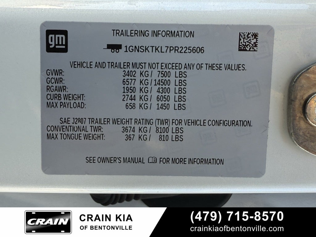 Jet Black/Mocha Leather, 15 Diagonal Multi-Color Head-Up Display, 1st & 2nd Row Color-Keyed Carpeted Floor Mats, 2-Speed Active Electronic AutoTrac Transfer Case, 3.23 Rear Axle Ratio, 3rd Row 60/40 Power-Folding Split-Bench Seat, 3rd row seats: split-bench, 4-Wheel Disc Brakes, ABS brakes, Adaptive Cruise Control, Adaptive suspension, Advanced Technology Package, Advanced Trailering PKG, Air Conditioning, Alloy wheels, AM/FM radio: SiriusXM with 360L, Apple CarPlay/Android Auto, Auto High-beam Headlights, Auto-dimming door mirrors, Auto-dimming Rear-View mirror, Auto-leveling suspension, Automatic temperature control, Bose 10-Speaker Centerpoint Surround Audio Sys Ft, Brake assist, Bright Front & Rear Door Sill Plates, Bumpers: body-color, Chrome Door Handles w/Body-Color Strip, Color-Keyed Carpeting Floor Covering, Compass, Delay-off headlights, Driver & Front Outboard Passenger Airbags, Driver door bin, Driver vanity mirror, Dual Exhaust System, Dual front impact airbags, Dual front side impact airbags, Dual-Pane Power Panoramic Sunroof, Electronic Stability Control, Emergency communication system: OnStar and Chevrolet connected services capable, Enhanced Automatic Emergency Braking, Enhanced Automatic Parking Assist, Enhanced Driver Information Center, Exterior Parking Camera Rear, Extra Capacity Cooling System, Floor Console, Four wheel independent suspension, Front anti-roll bar, Front Bucket Seats, Front Center Armrest, Front dual zone A/C, Front High-Back Reclining Bucket Seats, Front reading lights, Fully automatic headlights, Garage door transmitter, Hands-Free Rear Power Programmable Liftgate, HD Surround Vision, Heads-Up Display, Heated & Ventilated Driver & Front Passenger Seats, Heated 2nd Row Outboard Seats, Heated door mirrors, Heated Driver & Front Passenger Seats, Heated front seats, Heated rear seats, Heated Steering Wheel, Heated steering wheel, Hill Descent Control, Hitch Guidance w/Hitch View, Illuminated entry, Infotainment Display, Inside Rearview Auto-Dimming Rear Camera Mirror, Integrated Trailer Brake Controller, Lane Change Alert w/Side Blind Zone Alert, LED Daytime Running Lamps, License Plate Front Mounting Package, Low tire pressure warning, Magnetic Ride Control Suspension, Max Trailering Package, Memory seat, Memory Settings, Navigation System, Not Equipped w/4-Way Driver & Fr Pass Pwr Lumbar, Not Equipped w/Wheel Locks (LPO), Not Equipped w/Wireless Charging, Occupant sensing airbag, Outside Heated Power-Adjustable Mirrors, Outside temperature display, Overhead airbag, Overhead console, Panic alarm, Passenger door bin, Passenger vanity mirror, Perforated Leather Seat Trim, Power door mirrors, Power driver seat, Power Liftgate, Power passenger seat, Power Release 2nd Row Bucket Seats, Power steering, Power Tilt & Telescopic Steering Column, Power windows, Power-Retractable Assist Steps, Preferred Equipment Group 3LZ, Premium audio system: Chevrolet Infotainment 3 Premium, Radio: Chevrolet Infotainment 3 Premium System, Rain sensing wipers, Rear air conditioning, Rear anti-roll bar, Rear Camera Mirror Washer, Rear Cross Traffic Alert, Rear Pedestrian Alert, Rear reading lights, Rear Seat Media System, Rear window defroster, Rear window wiper, Remote keyless entry, Remote Start, Reverse Automatic Braking, Roof rack: rails only, Safety Alert Seat, Security system, Set of 4 Wheel Locks (LPO), SiriusXM Radio w/360L, Smart Trailer Integration Indicator, Speed control, Speed-sensing steering, Split folding rear seat, Spoiler, Steering wheel memory, Steering wheel mounted audio controls, Super Cruise, Super Cruise (DISC), Tachometer, Telescoping steering wheel, Tilt steering wheel, Traction control, Trailer Side Blind Zone Alert, Trip computer, Turn signal indicator mirrors, Universal Home Remote, Variably intermittent wipers, Ventilated front seats, Voltmeter, Wheels: 22 x 9 Sterling Silver Premium Painted, Wireless Chargin