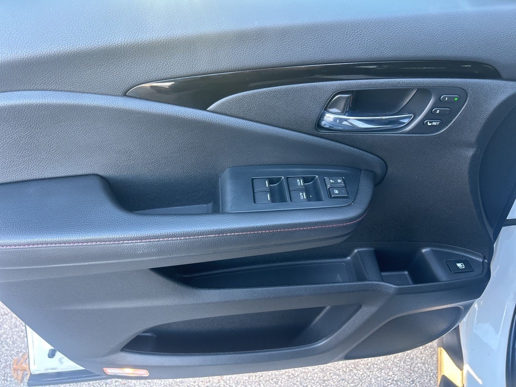 Mahogany Trim Sea Leather, 4-Wheel Disc Brakes, 4.33 Axle Ratio, 8 Speakers, ABS brakes, Air Conditioning, Alloy wheels, AM/FM radio: SiriusXM, Apple CarPlay/Android Auto, Auto High-beam Headlights, Auto-dimming Rear-View mirror, Automatic temperature control, Blind Spot Information (BSI) System warning, Bluetooth® Hands-Free Link, Brake assist, Bumpers: body-color, Compass, Delay-off headlights, Driver door bin, Driver vanity mirror, Driver's Seat Mounted Armrest, Dual front impact airbags, Dual front side impact airbags, Electronic Stability Control, Exterior Parking Camera Rear, Four wheel independent suspension, Front anti-roll bar, Front Bucket Seats, Front dual zone A/C, Front fog lights, Front reading lights, Fully automatic headlights, Garage door transmitter: HomeLink, Heated door mirrors, Heated Front Bucket Seats, Heated front seats, Heated steering wheel, Honda Satellite-Linked Navigation System, Illuminated entry, Leather Seat Trim, Low tire pressure warning, Memory seat, Navigation system: Honda Satellite-Linked Navigation System, Occupant sensing airbag, Outside temperature display, Overhead airbag, Overhead console, Panic alarm, Passenger door bin, Passenger seat mounted armrest, Passenger vanity mirror, Power door mirrors, Power driver seat, Power moonroof, Power passenger seat, Power steering, Power windows, Radio data system, Radio: 540-Watt Premium Audio System w/8 Speakers, Rear air conditioning, Rear anti-roll bar, Rear reading lights, Rear seat center armrest, Rear step bumper, Rear window defroster, Remote keyless entry, Security system, SiriusXM, Speed control, Speed-sensing steering, Split folding rear seat, Steering wheel mounted audio controls, Tachometer, Telescoping steering wheel, Tilt steering wheel, Traction control, Trip computer, Turn signal indicator mirrors, Variably intermittent wipers, Wheels: 18 Exclusive Gloss Black Alloy.