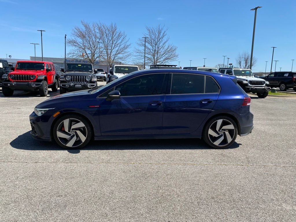 2023 Volkswagen Golf GTI FWD 2.0L TSI DOHC 7-Speed DSG Automatic with Tiptronic 4-Wheel Disc Brakes, 7 Speakers, ABS brakes, Air Conditioning, Alloy wheels, AM/FM radio, Auto-dimming Rear-View mirror, Automatic temperature control, Brake assist, Bumpers: body-color, Cloth Seating Surfaces, Compass, Delay-off headlights, Driver door bin, Driver vanity mirror, Dual front impact airbags, Dual front side impact airbags, Electronic Stability Control, Emergency communication system: VW Car-Net Safe & Secure 5-year, Exterior Parking Camera Rear, Forward collision: FCW w/Autonomous Emergency Braking mitigation, Four wheel independent suspension, Front anti-roll bar, Front Bucket Seats, Front Center Armrest, Front fog lights, Front reading lights, Fully automatic headlights, Heated door mirrors, Heated front seats, Heated Front Top Sport Seats, Heated steering wheel, Illuminated entry, Lane Departure Warning System, Leather steering wheel, Low tire pressure warning, Occupant sensing airbag, Outside temperature display, Overhead airbag, Overhead console, Panic alarm, Passenger door bin, Passenger vanity mirror, Power door mirrors, Power driver seat, Power passenger seat, Power steering, Power windows, Radio data system, Radio: MIB3 Composition Color w/8.25 Touchscreen, Rain sensing wipers, Rear anti-roll bar, Rear reading lights, Rear seat center armrest, Rear window defroster, Rear window wiper, Remote keyless entry, Security system, Speed control, Speed-sensing steering, Speed-Sensitive Wipers, Split folding rear seat, Spoiler, Sport steering wheel, Steering wheel mounted audio controls, Tachometer, Telescoping steering wheel, Tilt steering wheel, Traction control, Trip computer, Turn signal indicator mirrors, Variably intermittent wipers, Wheels: 18 2-Tone Machined Alloy. CARFAX One-Owner.