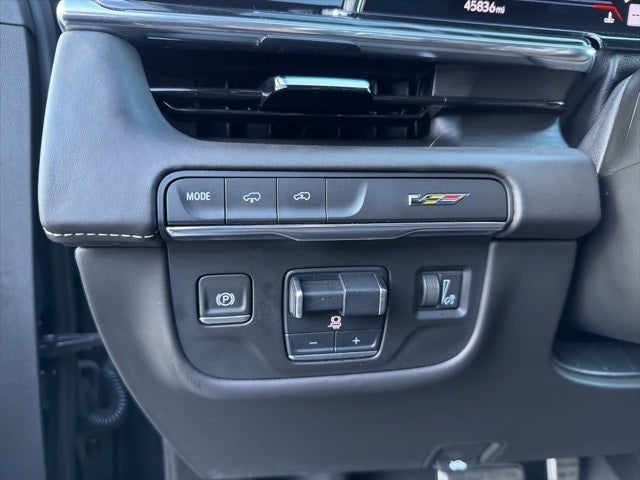 Clean CARFAX. CARFAX One-Owner. Bluetooth®, Safety Package, ONE OWNER, CLEAN CARFAX, Escalade V-Series, 4D Sport Utility, 6.2L V8 Supercharged, 10-Speed Automatic with Overdrive, AWD, Black Raven, Jet Black w/Leather Seating Surfaces w/Precision Perf Inserts, 16.9 Diagonal OLED Infotainment Screen, 2-Presets Memory For Driver Seat Adjuster, 3.23 Axle Ratio, 3rd row seats: split-bench, 4-Way Power Driver Lumbar Seat Adjuster, 4-Way Power Front Passenger Lumbar Seat Adjuster, 4-Wheel Disc Brakes, 8-Way Power Driver Seat Adjuster, 8-Way Power Front Passenger Seat Adjuster, A/V remote, ABS brakes, Active Noise Cancellation, Adaptive Cruise Control, Adaptive suspension, Air Conditioning, Air Ride Adaptive Suspension, AKG Studio Reference 36-Speaker Audio System, Alloy wheels, AM/FM radio: SiriusXM with 360L, Apple CarPlay/Android Auto, Audio memory, Auto High-beam Headlights, Auto tilt-away steering wheel, Auto-dimming door mirrors, Auto-dimming Rear-View mirror, Automatic Seat Belt Tightening, Automatic temperature control, Body-Color Door Handles, Brake assist, Bumpers: body-color, Compass, Delay-off headlights, Door auto-latch, Door Lock & Latch Shields, Driver door bin, Driver vanity mirror, Dual front impact airbags, Dual front side impact airbags, Electronic Limited-Slip Differential, Electronic Stability Control, Emergency communication system: OnStar and Cadillac connected services capable, Enhanced Automatic Emergency Braking, Enhanced Automatic Parking Assist, Exterior Parking Camera Rear, Floor Console w/Covered Storage, Four wheel independent suspension, Front anti-roll bar, Front Auxiliary 12-volt Power Outlet, Front Bucket Seats, Front Center Armrest w/Storage, Front dual zone A/C, Front reading lights, Full Semi-Aniline Leather Seat Trim, Fully automatic headlights, Garage door transmitter, Genuine wood console insert, Genuine wood dashboard insert, Genuine wood door panel insert, Glass Breakage Sensor, Gloss Black Escalade Nameplate (LPO), HD Radio, Headphones, Heads-Up Display, Heated & Ventilated Driver & Front Passenger Seats, Heated door mirrors, Heated Driver & Front Passenger Seats, Heated front seats, Heated rear seats, Heated steering wheel, Hitch Guidance w/Hitch View, Illuminated entry, Illuminating Front & Rear Sill Plates, Integrated Trailer Brake Controller, Leather steering wheel, Low tire pressure warning, Magnetic Ride Control Suspension, Memory seat, Monochrome Cadillac Emblems (LPO), Navigation System, Night vision lights, Occupant sensing airbag, Onyx Package (LPO), Outside temperature display, Overhead airbag, Overhead console, Panic alarm, Passenger door bin, Passenger vanity mirror, Platinum Interior Trim, Power door mirrors, Power driver seat, Power Liftgate, Power Lumbar Massage Driver Seat, Power Lumbar Massage Front Passenger Seat, Power moonroof, Power Panoramic Tilt-Sliding Sunroof, Power passenger seat, Power steering, Power windows, Power-Retractable Assist Steps, Preferred Equipment Group 1SD, Radio data system, Radio: AM/FM w/Navigation, Rain sensing wipers, Rear air conditioning, Rear anti-roll bar, Rear audio controls, Rear Camera Mirror, Rear Camera Mirror Washer, Rear Cross Traffic Alert, Rear reading lights, Rear Seat Entertainment System, Rear window defroster, Rear window wiper, Reconfigurable Full-Color Head-Up Display, Remote keyless entry, Reverse Automatic Braking, Security system, SiriusXM w/360L, Smart Trailer Integration Indicator, Soft Closing Front & Rear Doors, Speed control, Split folding rear seat, Spoiler, Steering wheel memory, Steering wheel mounted audio controls, Tachometer, Teen Driver, Telescoping steering wheel, Theft-Deterrent Alarm System, Tilt steering wheel, Touring Package, Traction control, Trailer Side Blind Zone Alert, Trip computer, Turn signal indicator mirrors, Variably intermittent wipers, Vehicle Inclination Sensor, Vehicle Interior Movement Sensor, Ventilated front seats, Voltmeter, Wheel Locks, Wheels: 22 Forged Multi-S