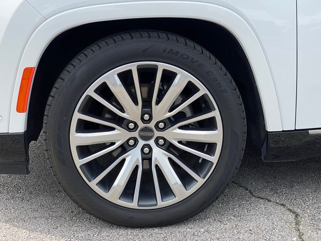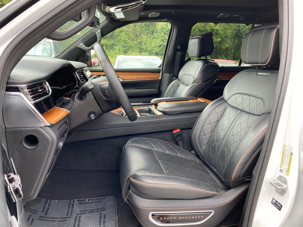 2024 Jeep Grand Wagoneer L 4WD 3.0L I6 8-Speed Automatic 3.92 Rear Axle Ratio, 3rd row seats: bench, 4-Wheel Disc Brakes, ABS brakes, Adjustable pedals, Air Conditioning, Alloy wheels, AM/FM radio: SiriusXM with 360L, Anti-whiplash front head restraints, Apple CarPlay/Android Auto, Audio memory, Auto High-beam Headlights, Auto-dimming door mirrors, Auto-dimming Rear-View mirror, Auto-leveling suspension, Automatic temperature control, Brake assist, Bumpers: body-color, Compass, Delay-off headlights, Driver door bin, Driver vanity mirror, Driver's Seat Mounted Armrest, Dual front impact airbags, Dual front side impact airbags, Electronic Stability Control, Emergency communication system, Four wheel independent suspension, Front anti-roll bar, Front Bucket Seats, Front Center Armrest w/Storage, Front dual zone A/C, Front fog lights, Front reading lights, Fully automatic headlights, Garage door transmitter, Genuine wood console insert, Genuine wood dashboard insert, Genuine wood door panel insert, Heads-Up Display, Heated door mirrors, Heated front seats, Heated rear seats, Heated steering wheel, Illuminated entry, Knee airbag, Leather steering wheel, Low tire pressure warning, Memory seat, Navigation System, Night vision lights, Normal Duty Suspension, Occupant sensing airbag, Outside temperature display, Overhead airbag, Overhead console, Panic alarm, Passenger door bin, Passenger seat mounted armrest, Passenger vanity mirror, Pedal memory, Power adjustable front head restraints, Power door mirrors, Power driver seat, Power Liftgate, Power moonroof, Power passenger seat, Power steering, Power windows, Premium Leather Trimmed Bucket Seats, Quick Order Package 28W, Radio data system, Radio: Uconnect 5 Nav w/12.0 Display, Rain sensing wipers, Rear air conditioning, Rear anti-roll bar, Rear dual zone A/C, Rear reading lights, Rear seat center armrest, Rear window defroster, Rear window wiper, Reclining 3rd row seat, Remote keyless entry, Roof rack, Security system, Speed control, Speed-sensing steering, Speed-Sensitive Wipers, Split folding rear seat, Steering wheel memory, Steering wheel mounted audio controls, Tachometer, Telescoping steering wheel, Tilt steering wheel, Traction control, Trip computer, Turn signal indicator mirrors, Two Tone Paint Group, Variably intermittent wipers, Ventilated front seats, Ventilated rear seats, Voltmeter, Wheels: 22 x 9.0 Premium 4 Aluminum. CARFAX One-Owner.
