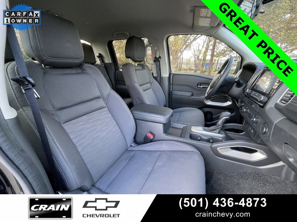 100 Hour Love It or Leave It Exchange Policy, 100 Year or 100,000 Mile Power-Train Warranty, *** 1 Owner CARFAX ***, Cruise Control, Steering Wheel Controls, Keyless Entry, Bluetooth®, USB / AUV Ports, MP3 Player, SiriusXM Satellite Radio, Wireless Apple CarPlay, Wireless Google Android Auto, Alloy Wheels, Premium Wheels, Forward Collision Alert, Premium Audio, Color Touchscreen Display, Backup / Rear View Camera, Trailer Sway Contral, Frontier SV, 4D Crew Cab, 3.8L DI DOHC 24V V6, 9-Speed Automatic with Overdrive, 4WD, Super Black, Charcoal w/Cloth Seat Trim, 16 Alloy Wheels, 3.692 Axle Ratio, 4-Wheel Disc Brakes, 6 Speakers, ABS brakes, Air Conditioning, Alloy wheels, AM/FM radio: SiriusXM, Anti-whiplash front head restraints, Apple CarPlay/Android Auto, Brake assist, Bumpers: body-color, Carpeted Floor Mats, Driver door bin, Driver vanity mirror, Dual front impact airbags, Dual front side impact airbags, Electronic Stability Control, Front anti-roll bar, Front Bucket Seats, Front Center Armrest, Front reading lights, Front wheel independent suspension, Fully automatic headlights, Illuminated entry, Knee airbag, Low tire pressure warning, Occupant sensing airbag, Overhead airbag, Panic alarm, Passenger door bin, Passenger vanity mirror, Power door mirrors, Power driver seat, Power steering, Power windows, Premium Cloth Seat Trim, Radio data system, Radio: SXM/AM/FM/AUX/USB Audio System, Rear anti-roll bar, Rear seat center armrest, Rear side impact airbag, Rear step bumper, Remote keyless entry, Security system, Speed control, Speed-sensing steering, Split folding rear seat, Steering wheel mounted audio controls, Tachometer, Tilt steering wheel, Traction control, Trip computer, Variably intermittent wipers, Voltmeter.