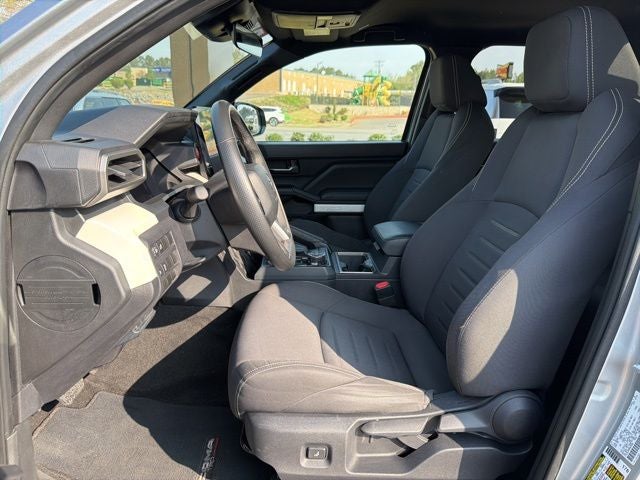 The Tacoma's striking silver exterior and tough off-road styling make it a standout on the road. Inside, you'll find a spacious and well-equipped cabin with premium amenities like a leather-wrapped steering wheel, automatic climate control, and an auto-dimming rearview mirror.