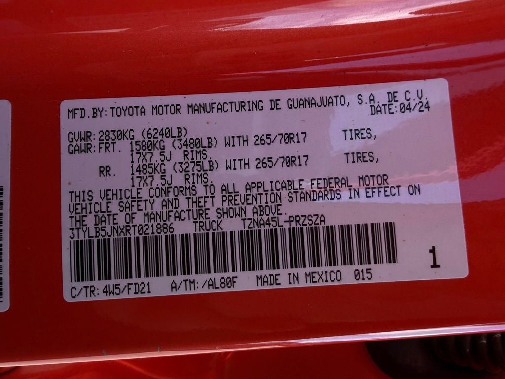 - Wheels: 17" TRD Off-Road Alloy