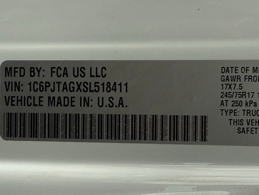 2025 Jeep Gladiator 4WD 3.6L V6 24V VVT 8-Speed Automatic Gladiator Sport S 4WD LOW MILES!!, 4D Crew Cab, 3.6L V6 24V VVT, 8-Speed Automatic, 4WD, Bright White Clearcoat, Black Cloth. CARFAX One-Owner. Clean CARFAX.