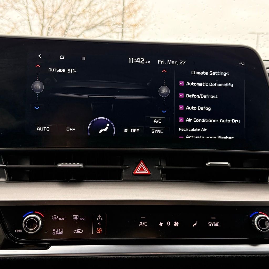 - Radio: AM/FM/HD Audio System -inc: 12.3" touchscreen, navigation, satellite radio, 6 speakers, Apple Carplay and Android Auto, Kia Connect, WiFi, map OTA, voice recognition, USB, steering wheel audio controls and Bluetooth® Hands-free phone and streaming audio