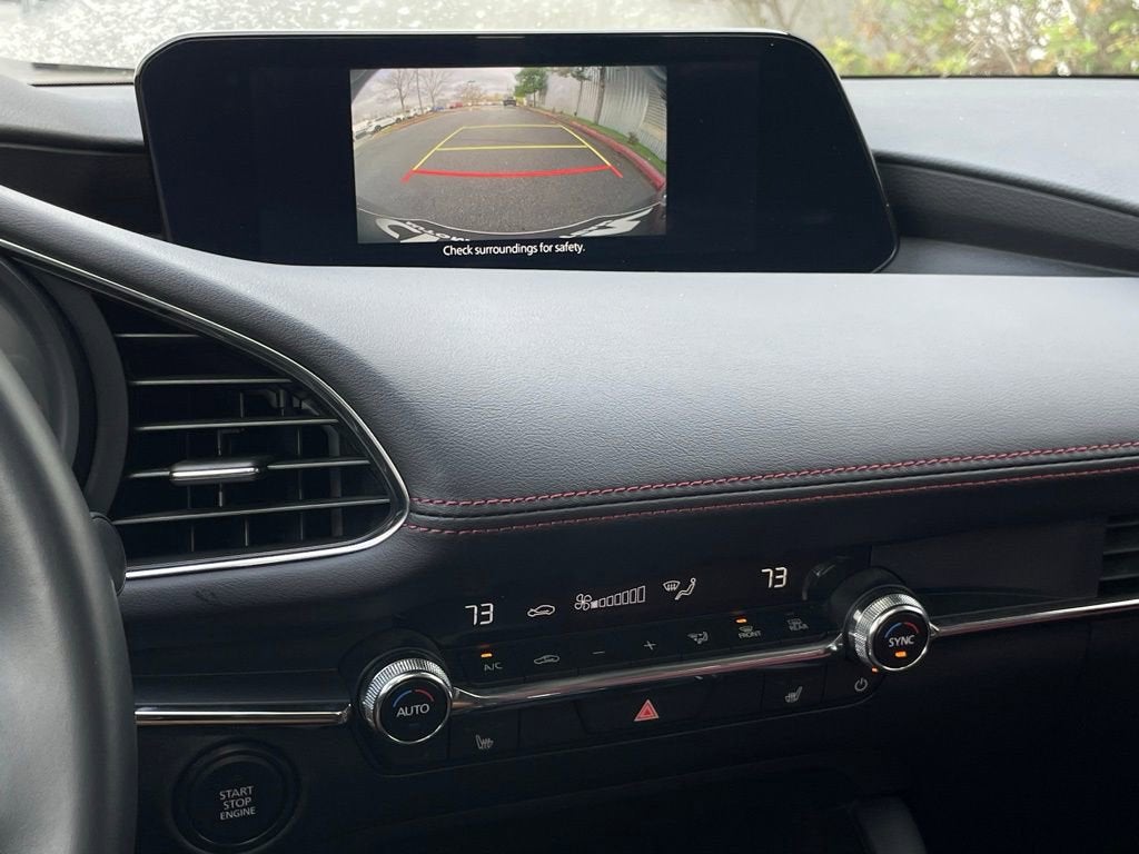 Step inside this Mazda3 and you'll be greeted by a cabin that exudes sophistication and comfort. The leather-wrapped steering wheel and shift knob provide a premium feel, while the heated front sport bucket seats ensure you and your passengers enjoy a relaxing ride, no matter the weather. The MAZDA CONNECT Infotainment System, with its intuitive controls and seamless connectivity, keeps you entertained and connected on the go.