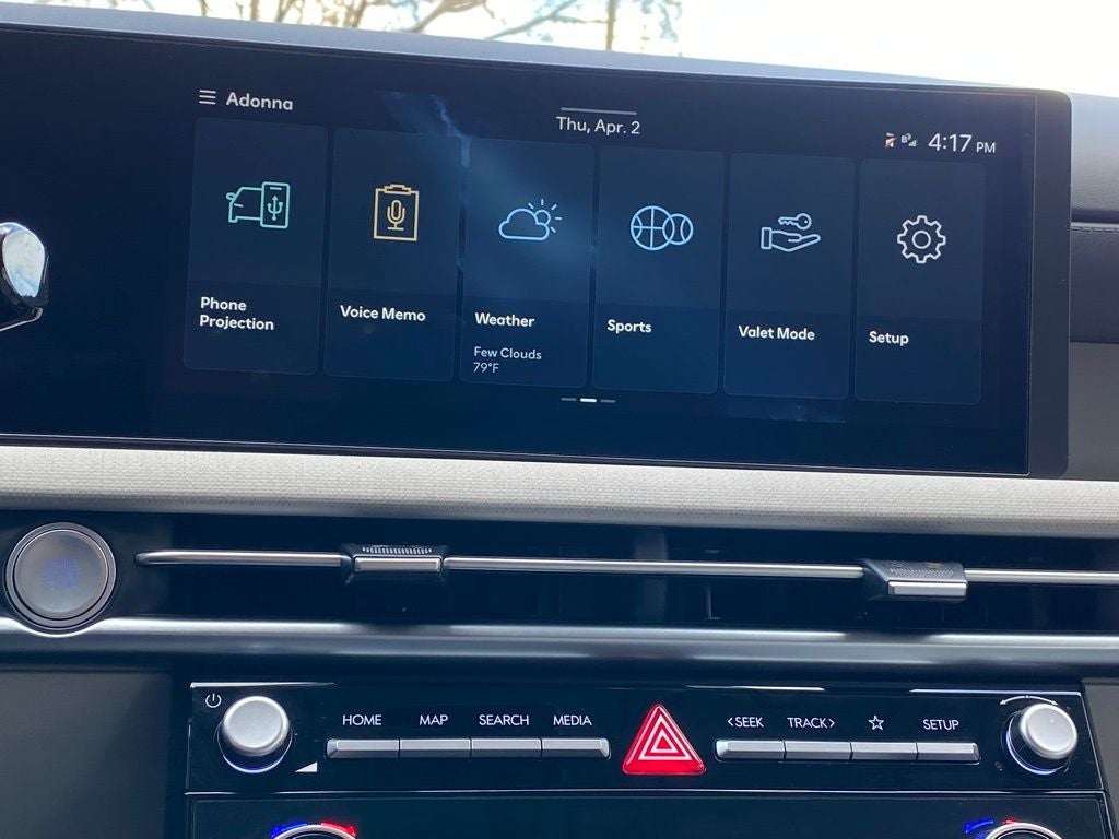 - Radio: AM/FM/HD Audio System -inc: 12.3" color touchscreen w/onboard navigation, 6 speakers, SiriusXM satellite radio system (3-month trial subscription), wireless Apple CarPlay and Android Auto integration, dynamic voice recognition, controller OTA update capability, map and multimedia software OTA update capability, Blue Link connected car system and USB connectivity